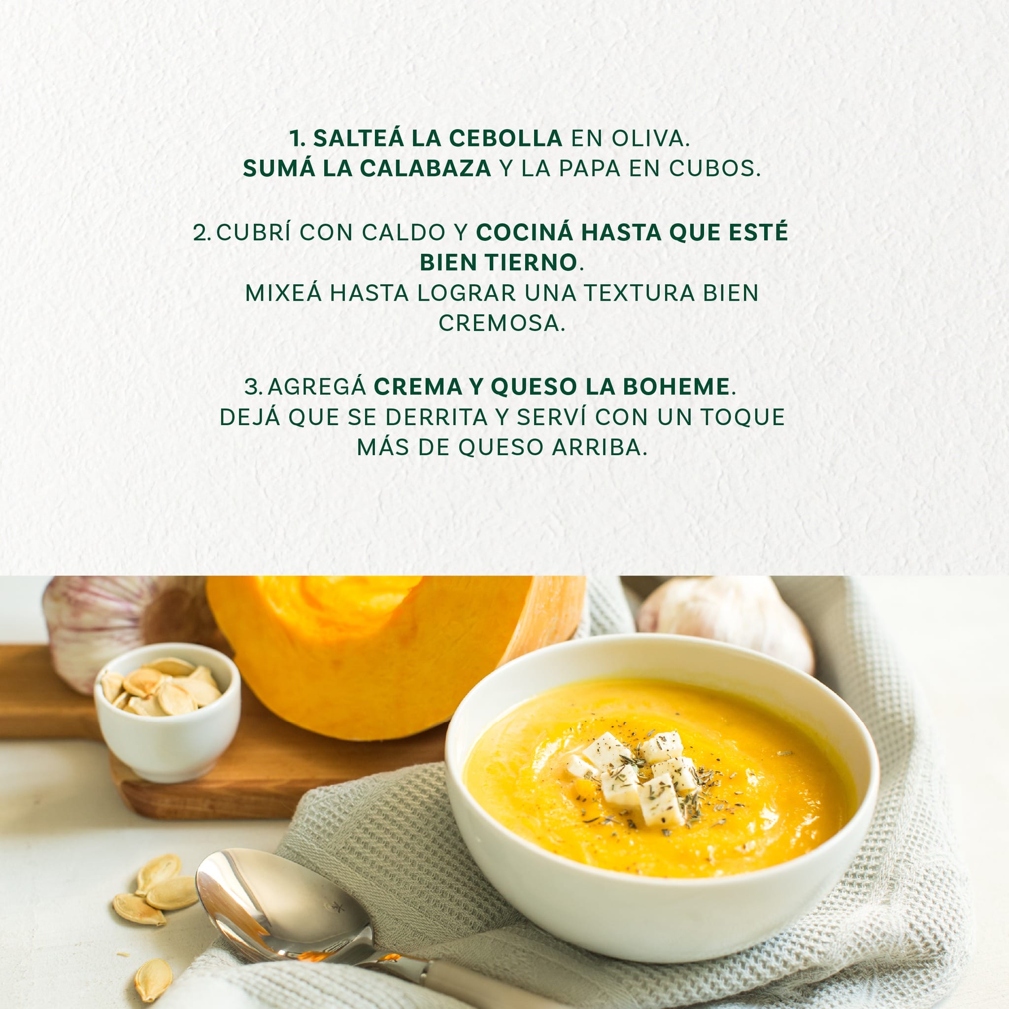 Esta sopa cremosa de calabaza con queso tiene todo lo que un día de invierno necesita: textura suave, un toque dulce y ese final que reconforta 🧀 Descubrí cómo prepararla.